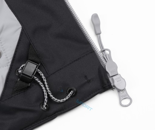Kurtka posiada wewnętrzny antypoślizgowy pas śniegowy zapinany na napy dla lepszego dopasowania i ochrony przed zimnem. Dół kurtki regulowany jest dodatkowo elastycznymi ściągaczami na stopery:
