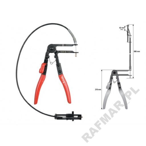 Serwis mechaniczny i samochodowy, do rozpinania rozprężnych opasek zaciskowych na przewodach gumowych (układ chłodzenia, paliwowy i klimatyzacji), szczególnie przydatne w miejscach trudno dostępnych.