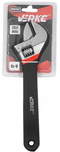 Klucz nastawny wykonany ze stali chromowo-wanadowej (CR-V). Zastosowany chrom gwarantuje odporność stali na korozję, utlenianie, ścieranie i dużą wytrzymałość w wysokiej temperaturze, zaś dodatek wanadu również wpływa na odporność na działanie wysokich temperatur oraz nieuleganie deformacjom. Miarka wypalona laserowo gwarantuje czytelność bez obaw o zatarcie się skali. Rękojeść pokryta tworzywem odpornym na działanie oleju i smarów.