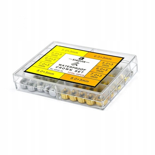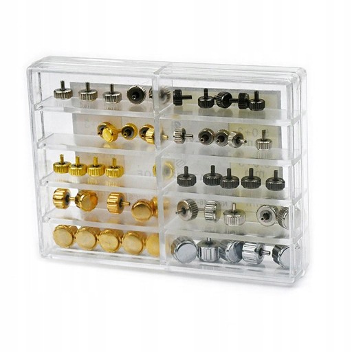 50x Asortyment Złotych i Srebrnych Części Korony Zegarka z Pudełkiem dla Zegarmistrza
