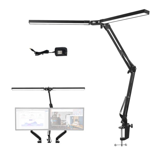 🔆Ta lampa biurkowa ma podwójną głowicę, którą można obracać o 360 stopni, co pozwala regulować kąt listwy świetlnej.
