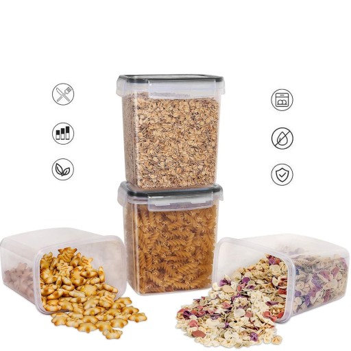 🌟 Ząbkowane 4-częściowe pokrywki z silikonowymi uszczelkami zamykają się po bokach, zapobiegając przedostawaniu się powietrza i wody. Zachowaj świeżość i suchość, a zawsze będziesz mógł spróbować czegoś chrupiącego i pysznego, nie martwiąc się o ziarna i wpływające na smak.