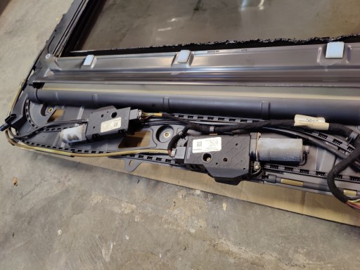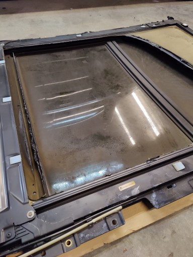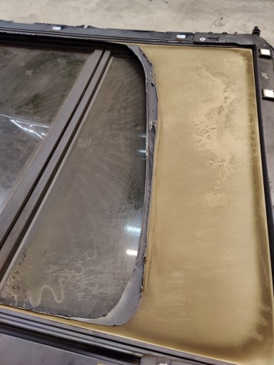 Szyberdach Ram 2020 Limited. Kompletny, używany szyberdach zdemontowany z auta po pożarze, część szklana cała, stopiona materiałowa roleta.