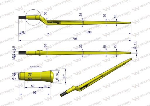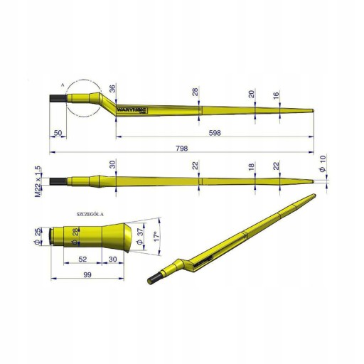 Ząb ładowacza ciężki Z 880mm Tur + Tuleja Waryński