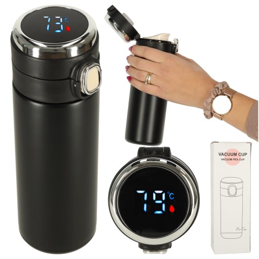 Kubek termiczny posiada wbudowany czujnik temperatury, dzięki któremu stale będziesz wiedzieć, jaką temperaturę ma wlany napój. Temperatura jest wyświetlana na ekranie LED na wieczku termosu.