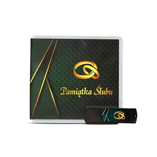 - pendrive o pojemność od 16 do 256 GB ozdobiony napisem Pamiątka Ślubu oraz motywem obrączek,