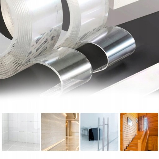 Taśma nano, dzięki wykonaniu z gumy akrylowej i mocnego żelu jest wodoodporna, dlatego możemy ją zdjąć z przyklejonego przedmiotu, przepłukać w wodzie i użyć ponownie. Ta dwustronna taśma, dzięki swojej odporności na wodę może być przyklejona również na mokrej ścianie w łazience, a także w kuchni.