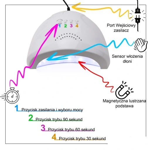 1️⃣ Wysoka moc i jakość lampy LED 48W zapewnia szybkość i równomierność utwardzania, gwarantując wydajność i oszczędność czasu.