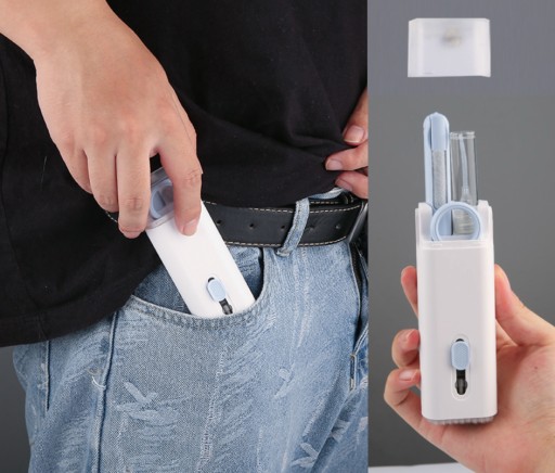 Czyścik wielofunkcyjny to zestaw 7w1, stworzony do skutecznego czyszczenia słuchawek, klawiatur i innych urządzeń.