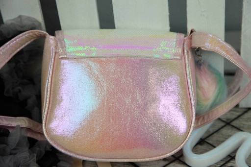 Torebka wykonana z bardzo efektownego opalizującego materiału.
