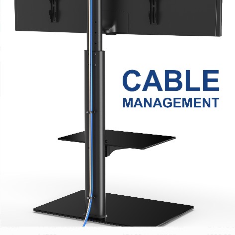 - Konstrukcja blokady bezpieczeństwa zapobiega ześlizgiwaniu się lub wypadnięciu telewizora. Zarządzanie kablami z tyłu, aby utrzymać porządek i ukryć kabel