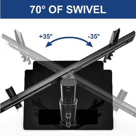 - Wspornik można obracać o 70 ° w lewo iw prawo i posiada 8 poziomów regulacji wysokości w zakresie 1035-1215 mm