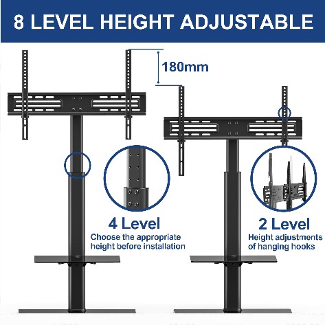 - Stojak można obracać, regulować wysokość, pasuje do większości telewizorów od 32 "do 65" i wadze do 30kg