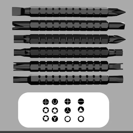 Zestaw zawiera 12 różnych narzędzi, obejmujących różne końcówki wkrętaków, co czyni go uniwersalnym i kompleksowym narzędziem do wielu zastosowań.