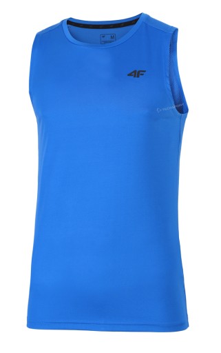 Męska koszulka na ramiączkach, wykonana z elastycznej dzianiny. Zastosowana technologia 4FDry z szybkoschnącymi włóknami usprawnia odprowadzanie wilgoci. Na plecach znajduje się perforowany materiał, który wspiera cyrkulację powietrza podczas aktywności.