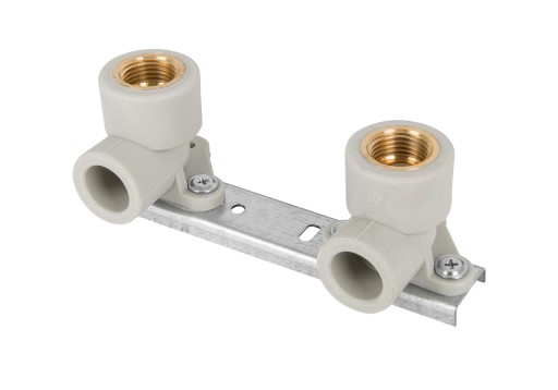 - Materiał: termoplastyczne tworzywo sztuczne z polipropylenu PP-R lub tworzywo PP-R z zatopioną w nim gwintowaną wkładką mosiężną, stalowa listwa montażowa