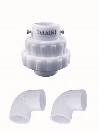 ✅Syfon zabezpieczający dostanie się wody do pompy + 2 mufy szarenie - nie zalecamy jego montowania jeśli balia będzie na zewnątrz.