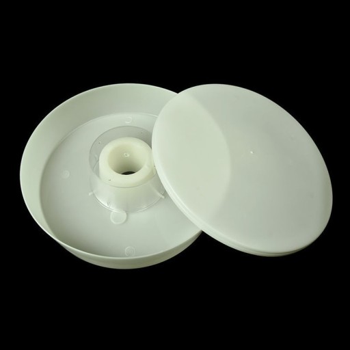 Wygodna w użytkowaniu podkarmiaczka powałkowa. Dzięki tej podkarmiaczce możemy podkarmiać rodzinę pszczelą bez zakłócania jej spokoju. Przezroczysty kołpak pozwala zobaczyć czy pszczoły pobierają syrop.