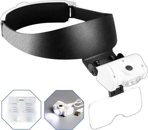 LUPA NAGŁOWNA CZOŁOWA OKULARY 2 LED PODŚWIETLANA🔍