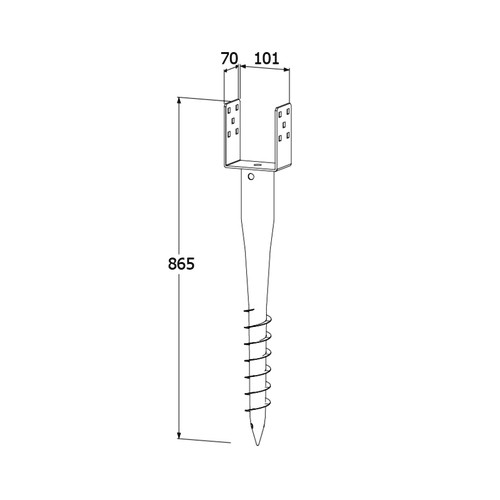 ОСНОВАНИЕ СТОЙКИ, ВКРЫВАЕМОЕ В ЗЕМЛЮ 100x865 АНКЕР PWU100 ШНЕК ОЦИНКОВАННЫЙ DOMAX