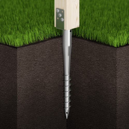 Podstawa słupa ułatwia montaż elementów drewnianych z ziemią, zapewnia odpowiednią dylatację drewna od podłoża.