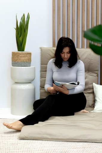 Marie jest wypełniony pierwotnym włóknem poliestrowym o gramaturze 1400 g/m2, zapewniającym wygodę i wsparcie. Pokrycie z mieszanki poliestru (65%) i bawełny (35%) jest trwałe i miłe w dotyku, a dodatkowa wyściółka z waty zwiększa komfort snu.