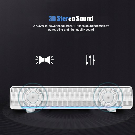 To smukły głośnik zasilany przez USB; jego stabilny i bezstratny efekt basowy oraz głośniki stereofoniczne zapewniają wspaniałą muzykę. Z wtyczką audio 3,5 mm, kompatybilną z różnymi urządzeniami i wygodną w użyciu.