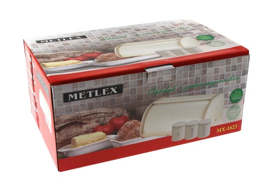 кремовый металлический набор Хлебница + контейнер для кофе, чая и сахара