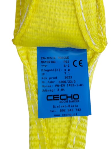 - znakowanie: udźwig, znak CE, nazwa producenta, numer seryjny, długość robocza zawiesia, data produkcji
