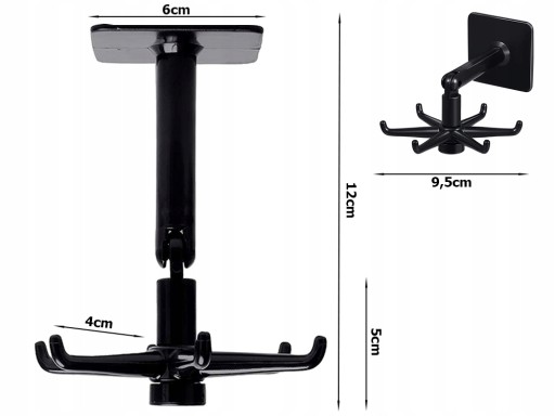 Wieszak zamontować można za pomocą przylepca. Wyposażony jest w 6 ramion.