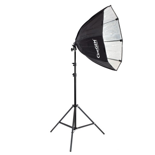 Zastosowana wysokiej jakości oprawa SOFTBOX zintegrowana z gniazdem E27, idealna zarówno do żarówek błyskowych, jak i żarówek światła stałego. Czasza została wykończona wewnątrz srebrnym materiałem, gwarantując optymalne rozproszenie światła. Lampa softbox zapewnia równomierne rozprowadzenie światła w całym wnętrzu, utrzymując identyczną moc na powierzchni dyfuzora.
