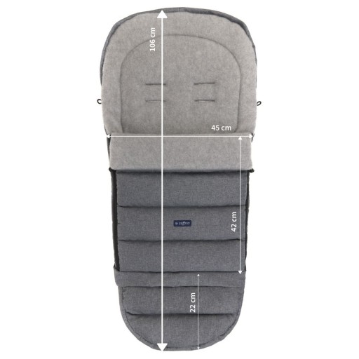 - Posiada nakładkę zapobiegająca zsuwaniu się śpiwora z oparcia wózka lub sanek