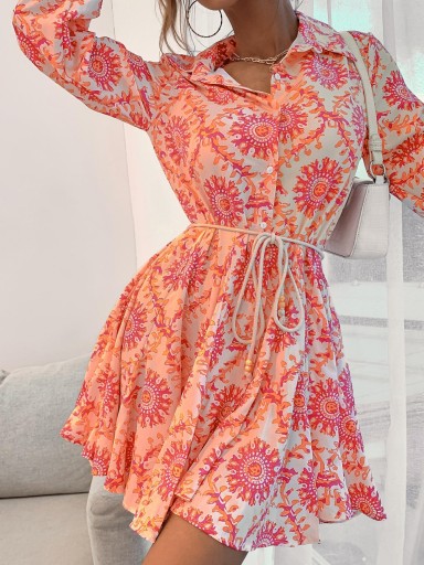 ПЛАТЬЕ-РУБАШКА С ЦВЕТОМ МИНИ-РУБАШКА С УЗОРОМ SHEIN M