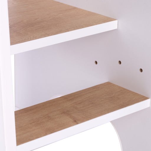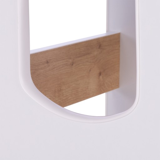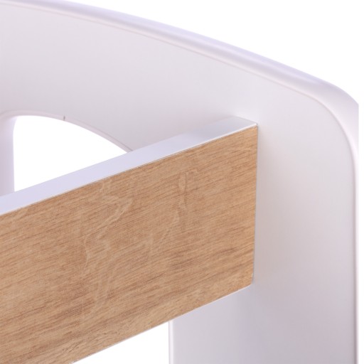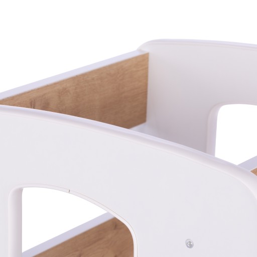 Produkt został zaprojektowany tak, aby Twoje dziecko było bezpieczne. Podest jest stabilny, mocowany metalowymi śrubami. Użyta laminowana płyta jest wykończona starannie, krawędzie zaokrąglone i zalaminowane co wygląda estetycznie, ale przede wszystkim zapobiega zranieniom o ostrą krawędź.