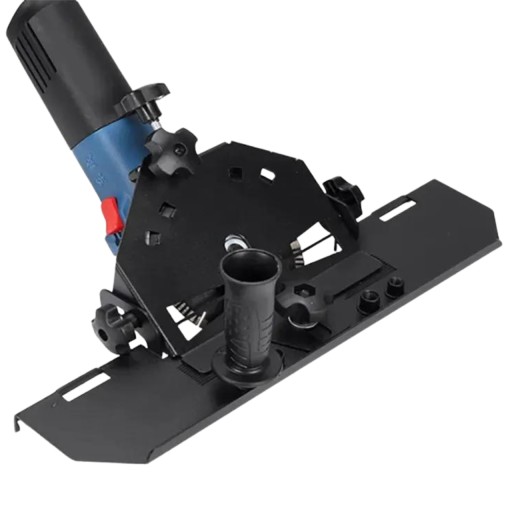 przystawka wraz z podłączoną do niej szlifierką kątową służy do precyzyjnego cięcia płytek pod kątem 45°. Zapewnia wysoką precyzję i dokładne ukosowane płytki oraz oszczędność czasu.