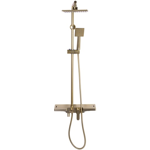 Zestaw Natryskowy Prysznicowy Kolumna BRAVO z Półką Złoty Szczotkowany Rea