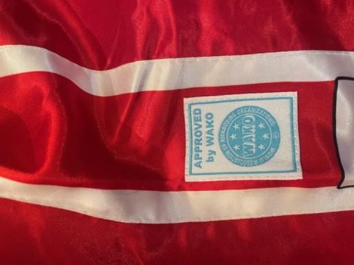 Długie spodnie do kickboxingu. Doskonale sprawdzą się podczas najważniejszych zawodów czy treningów. Szeroka guma w wyróżniającym się kolorze i wewnętrzne sznurki utrzymują spodnie we właściwym miejscu. Bardzo duży klin pozwala na większą swobodę ruchu i wygodę przy noszeniu suspensora. Naszywka z logo WAKO z boku nogawki - posiadają atest do startu w zawodach kickboxingu.