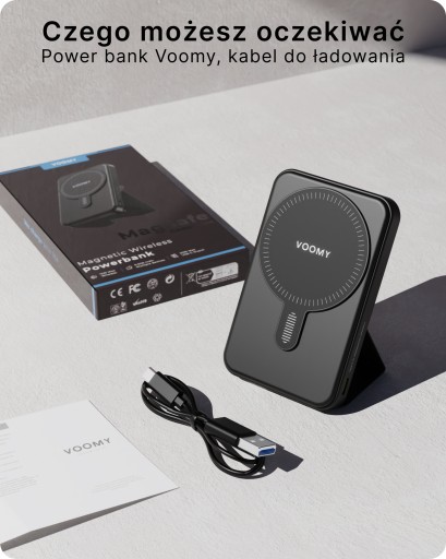 - Co otrzymujesz: Powerbank Voomy P6 z MagSafe, kabel ładujący, instrukcję obsługi oraz 36 miesięcy gwarancji z zawsze gotową do pomocy obsługą klienta.