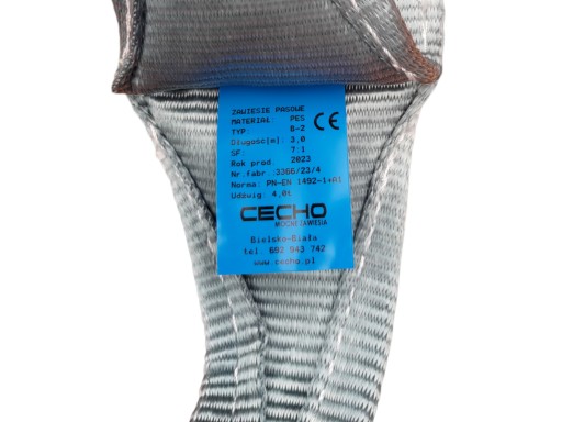- znakowanie: udźwig, znak CE, nazwa producenta, numer seryjny, długość robocza zawiesia, data produkcji