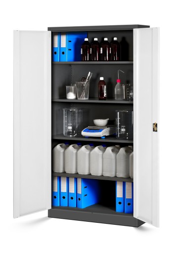 Szafa JAN NOWAK model JAN H – metalowa, antracytowo-biała, uniwersalna, na akta, leki, narzędzia