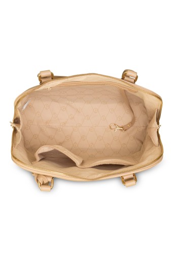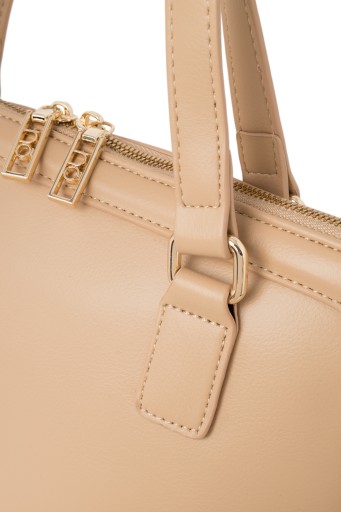 Uzupełnij swoje stylizacje o ponadczasową, funkcjonalną i elegancką aktówkę NOBO w kolorze beżowym. Zaprojektowano ją w taki sposób, by była pojemna i w razie potrzeby mieściła format A4. Dzięki temu jest doskonała na spotkania biznesowe, konferencje czy podróże służbowe, ale nie tylko – świetnie sprawdzi się również jako torebka codzienna, miejska. Jej sztywna konstrukcja gwarantuje zachowanie kształtu podczas użytkowania, bez względu na to, czy jest mocno wypełniona, czy nie. Jednokomorowa aktówka ma zapięcie na zamek błyskawiczny, a wewnątrz znajdują się trzy kieszenie, które pomogą zorganizować dokumenty i akcesoria. Dodatkowym atutem tej aktówki jest karabińczyk na klucze, dzięki czemu zawsze będziesz mieć je pod ręką. Długie uchwyty w kolorze torebki pozwalają na noszenie jej na ramieniu, w zgięciu łokcia lub w dłoni, a złote okucia i jasnobeżowa podszewka dodają elegancji.