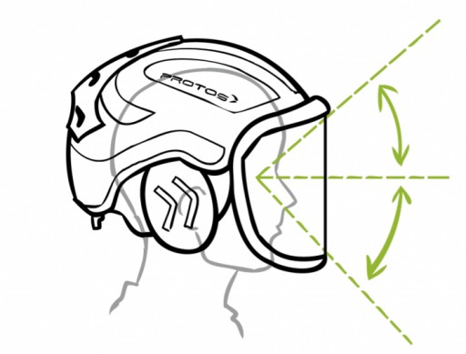 Metalowy wizjer Protos F39, z 39 otworami na cm², zapewnia doskonałą widoczność do góry i wyjątkową widoczność dookoła, zapewniając jednocześnie niezawodną ochronę przed trocinami. Drobna metalowa kratka jest pokryta specjalną powłoką zapobiegającą odbiciom światła i oblodzeniu w temperaturach poniżej zera.