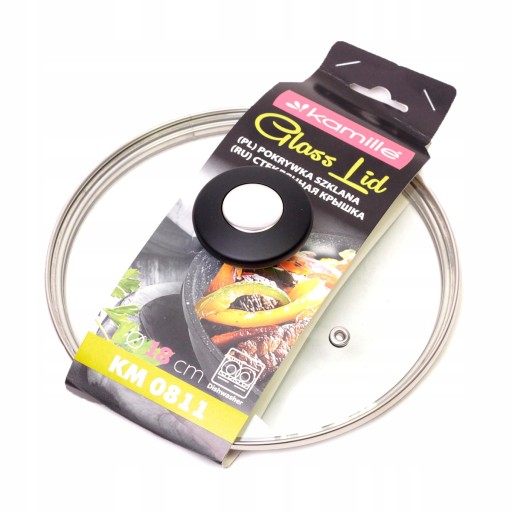Uniwersalna szklana pokrywka marki Kamille o średnice 18 cm znajdzie zastosowanie w każdej kuchni. Pasuje do wielu modeli garnków jak i patelni, w zależności od potrzeby.