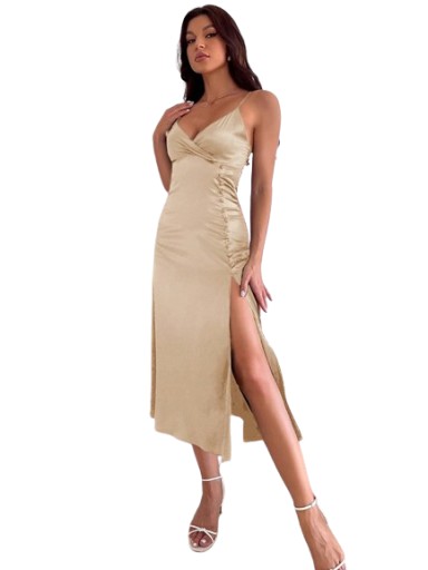 KC51109 * АТЛАСНОЕ ПЛАТЬЕ SHEIN НА РЕМЕНЯХ С РАЗРЕЗОМ S