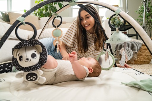 - Regulowane pałąki & pierścienie na zawieszki dla regulacji sensorycznej; przesuwany łącznik pałąków sprawia, że od tej pory możesz dostosować ich ułożenie do potrzeb rozwojowych swojego dziecka. Twój maluszek będzie mógł leżeć na brzuszku, mieć zabawki zawsze blisko rączek, a nawet bawić się na macie z Tobą!