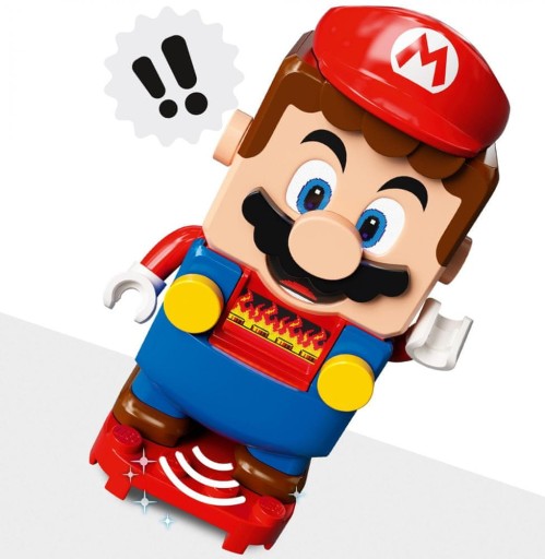 - Figurka LEGO® Mario™ ma czujniki koloru, a w oczach, ustach i na brzuchu wyświetlacze LCD, które pozwalają pokazać ponad 100 różnych natychmiastowych reakcji na ruch. Ma również głośnik, który odtwarza kultowe dźwięki i muzykę z gry wideo.