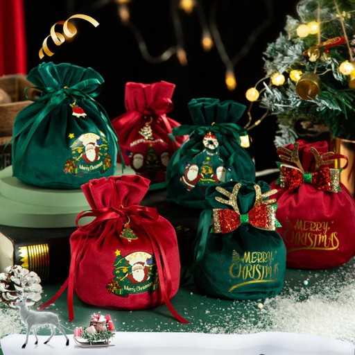 Świąteczne Torby Na Smakołyki Ze Sznurkami Lovely Party Favors New Year Large Green Santa