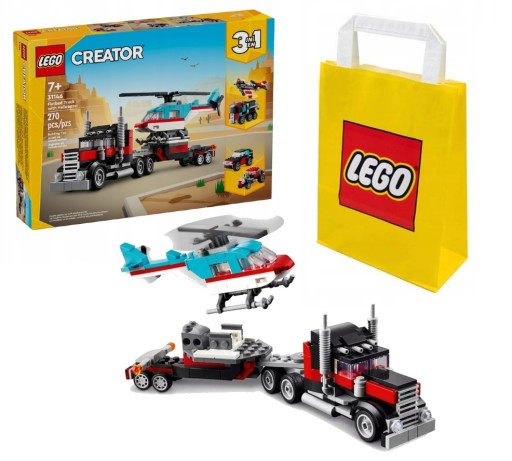 ⭐ Jeśli szukasz idealnego prezentu na każdą okazję, zestaw LEGO Creator 3w1- Ciężarówka z platformą i helikopter (31146) jest idealnym wyborem na urodziny, święta albo Dzień Dziecka dla dzieci w wieku od siedmiu lat. KUP teraz i podaruj niezapomnianą przygodę! ⭐