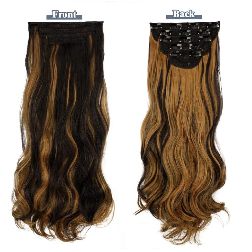 WŁOSY SYNTETYCZNE PRZEDŁUŻANIE WŁOSÓW CZARNO-BRĄZOWE NA KLIPSY SPINKI