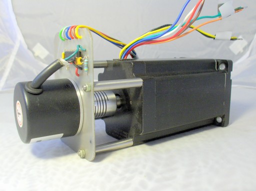 Na drugiej osi silnika zamontowany został enkoder o rozdzielczości 600 impulsów na obrót aby silnik mógł pracować w zamkniętej pętli.